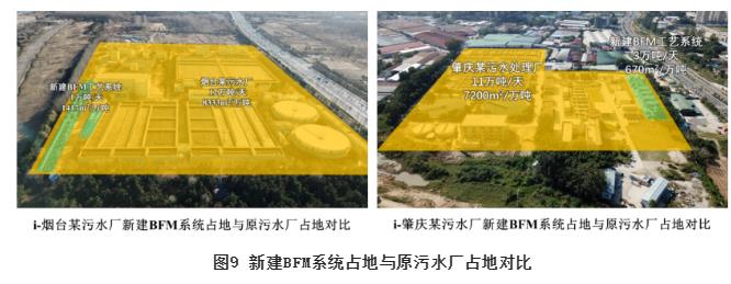 解决方案II为采用BFM工艺对生化系统进行原位改造。与泥膜复合MBBR工艺原位改造不同,在BFM工艺改造过程中,二沉池不再是全厂处理能力提升的限制性因素,对于提量可达设计水量的2倍以上。同时,在改造方式上BFM工艺更加灵活,不仅适用于常规污水厂的改造,还适用于SBR等间歇流工艺的连续流改造、MBR等无二沉池工艺的节能改造等特殊情形。