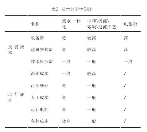 对比上述主工艺方案及技术经济性对比可知,传统三联箱方案设备造价、运行成本较废水一体化方案偏高;废水一体化设备基建投资小,可以作为零排放项目的预处理工艺,为电厂可预见的废水零排放工程建设打下基础;电絮凝技术已成功应用于多项废水处理和中水回用工程项目(主要包括重金属废水、难降解工业废水、复杂性有机废水等),为工业水处理和回用提供了更环保、更有效的解决方案,其在燃煤电厂脱硫废水处理方面的成果转化及技术引进正在得到越来越多专家的关注和期待。